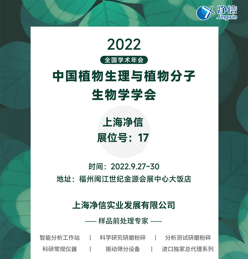 9月27日-30日|凈信邀您相約福州中國植物生理與分子生物學學會